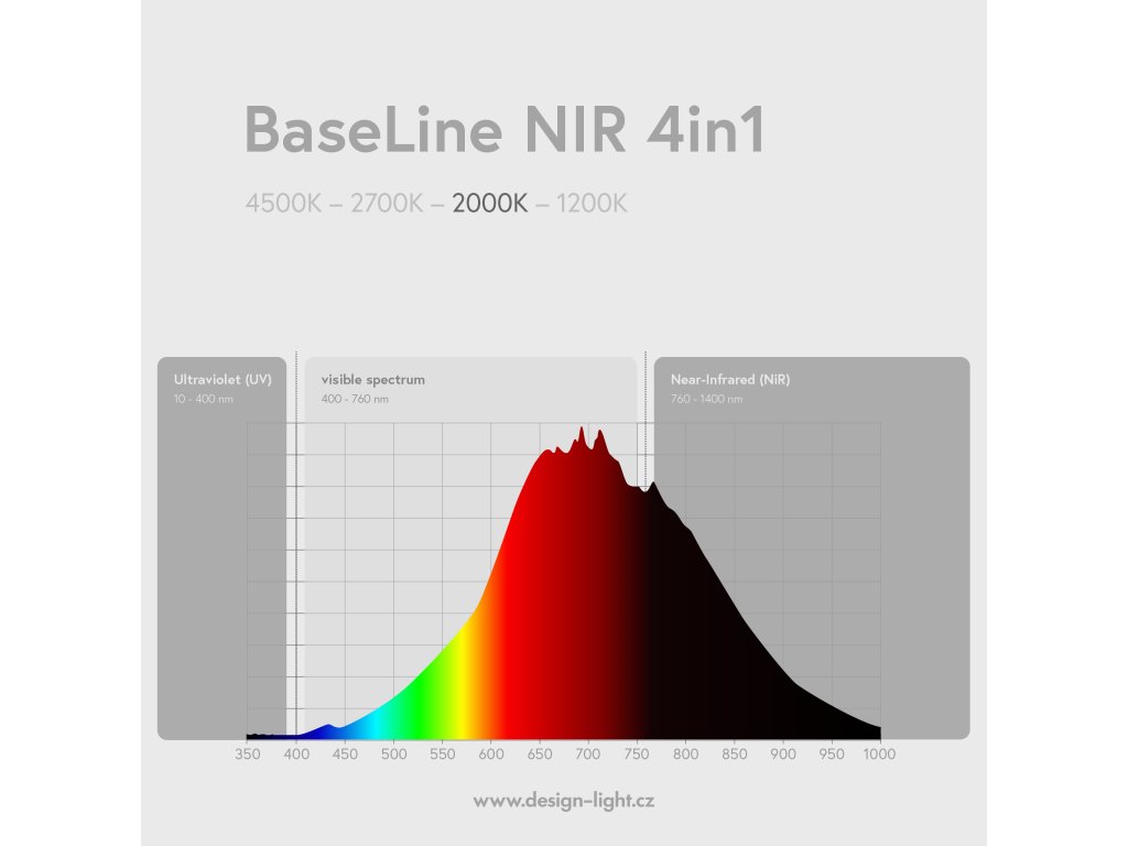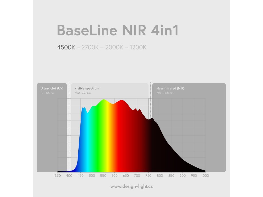 LED žárovka s paticí E27 se 4 světelnými kroky s prodlouženým spektrálním průběhem do blízké infračervené (NIR) oblasti s vysokým indexem podání barev (CRI) vyzařuje vždy krokem, který svítil naposledy (žárovka s paměťovou funkcí). Jednotlivé světelné kroky mají odstupňovanou intenzitu, viz níže.