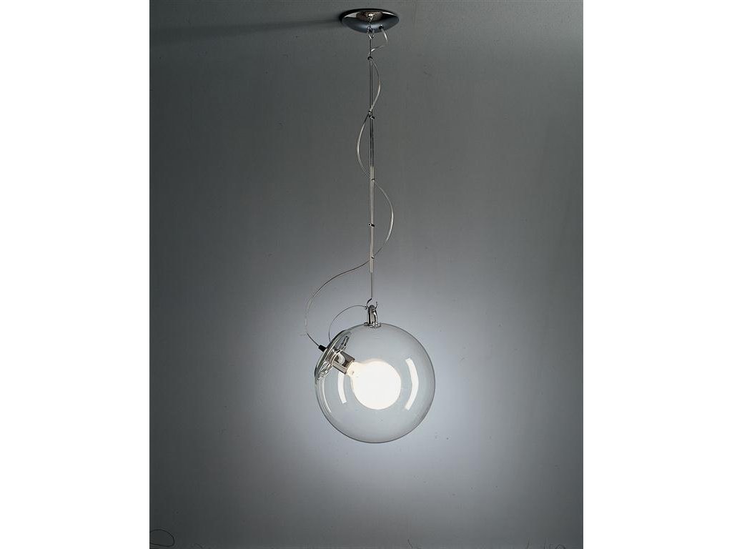 Structure in polished chromed metal, diffuser in transparent blown glass. Diffused light emission.
