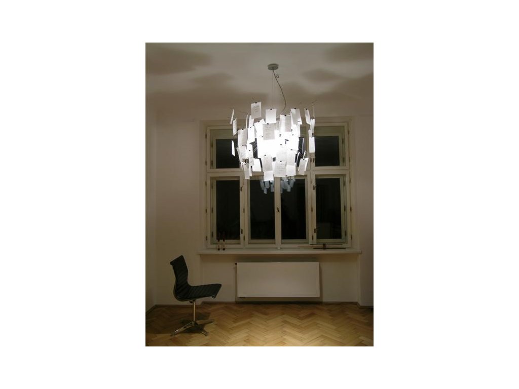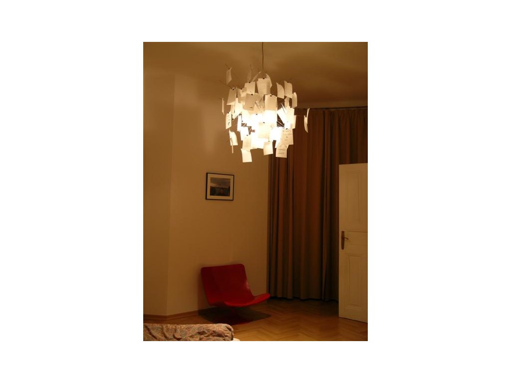 Japanese paper, stainless steel, heat-resistant satin-frosted glass. 40 printed and 40 blank paper sheets DIN A6. Replacement set of 80 blank paper sheets available.