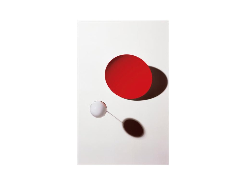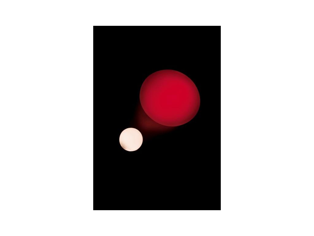 Metal, glass. Illuminated out of an opaline glass ball 8,5cm in diameter, a red-pigmented bowl seems to be floating three-dimensionally on the wall.