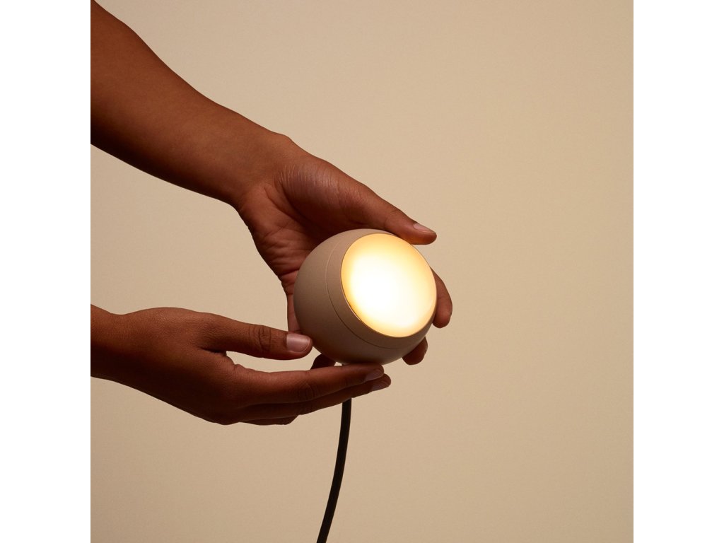 Bodové stolní či policové svítidlo vyrobené z hliníku dostupné ve 3 barevných variantách svítící měkkým velmi teple bílým světlem s možností přechodu od zlatavého světla až po oranžové bez modré a zelené