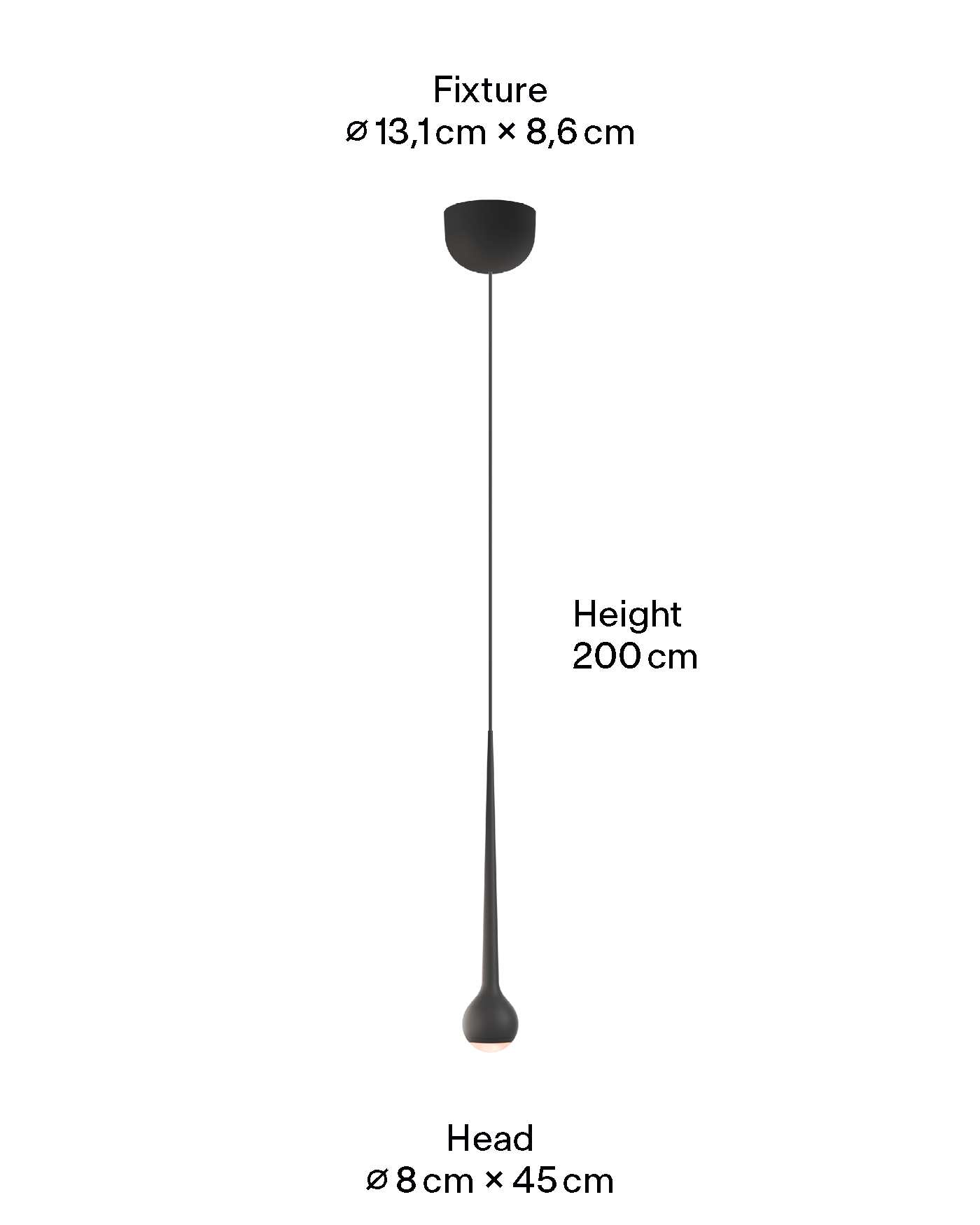 Falling Sun je elegantní závěsné svítidlo v několika barevných variantách svítící měkkým teple bílým až oranžovým světlem bez modré a zelené složky s náhradní teplotou chromatičnosti (CCT) od 1300 K do 2700 K a vysokou věrností podání barev (CRI > 90).