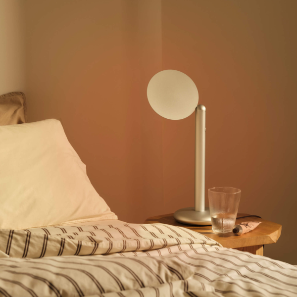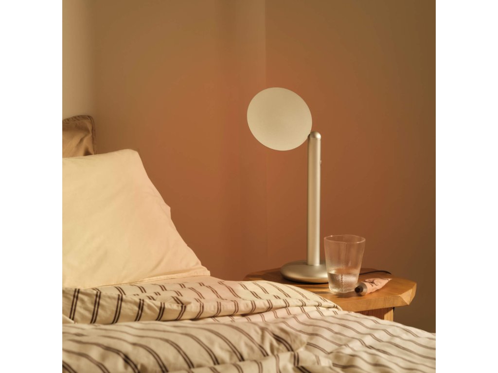 Stolní lampa je dostupná ve 3 barvách: Silver, Polished a Black Brass a vytváří relaxační a uklidňující atmosféru, která vám pomůže si po celém dni odpočinout a zrelaxovat se. Oranžové světlo je vhodné pro svícení v souladu se světelnou a spánkovou hygienou, tak, abyste si co nejméně narušili váš cirkadiánní rytmus a vyplavování hormonu melatoninu.