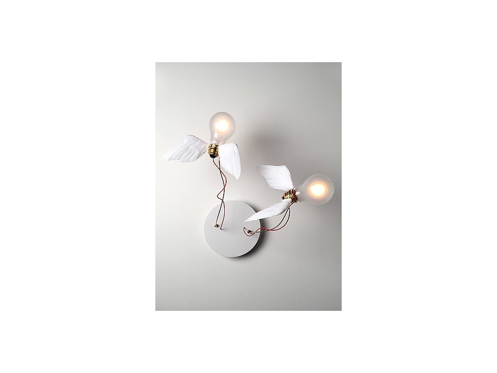 Vysoce kvalitní zdroj světla Ambient je vyráběn exkluzivně pro Ingo Maurer. Díky svému jemnému světelnému výkonu 760 lumenů (360°) zaplavují žárovky Ambient každou místnost magickým, teplým ambientním světlem. Nástěnné svítidlo, které inspiruje. Lucellino Doppio lze podle osobních preferencí namontovat na strop nebo na zeď. Tato designová lampa tak může vytvořit dekorativní akcent, například nad postelí v ložnici, v chodbě nebo v obývacím pokoji nad pohovkou. Tato vysoce kvalitní stropní a nástěnná lampa také okouzlí každého návštěvníka salonu, hotelu nebo obchodu. Všude upoutá pozornost a vybízí k zastavení: stmívatelná Lucellino Doppio s křídly z pravých peří (stmívač není součástí balení). Díky svému speciálnímu designu není Lucellino Doppio vhodná do místností s vysokou vlhkostí.
