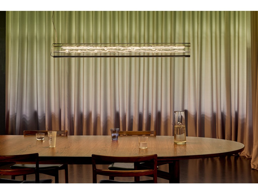 V Nalum se sklo stává pohybem a pohyb se stává světlem. Dlouhá, jemně zakřivená trubice z borosilikátového skla se jeví jako vznášející se objekt ve vzduchu. Její tvar je tvořen teplem, gravitací a rytmem. Vnější povrch odráží a ohýbá světlo do měnících se linií a vzorů. Uvnitř jsou skryty dva světelné zdroje s možností stmívání, jeden směřující nahoru a druhý dolů. Výsledkem je příjemná atmosféra a jasné osvětlení v jednom objektu. Dvě malé postavy surfařů mohou kopírovat vlnovitý tvar skla, jejich přítomnost je nenápadná, ale transformativní.