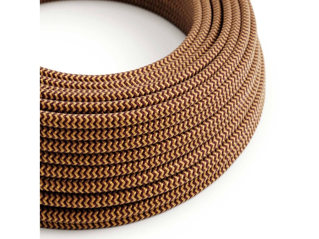 Hedvábný textilní elektrický kabel, RZ23 Zlato bordový Cik Cak