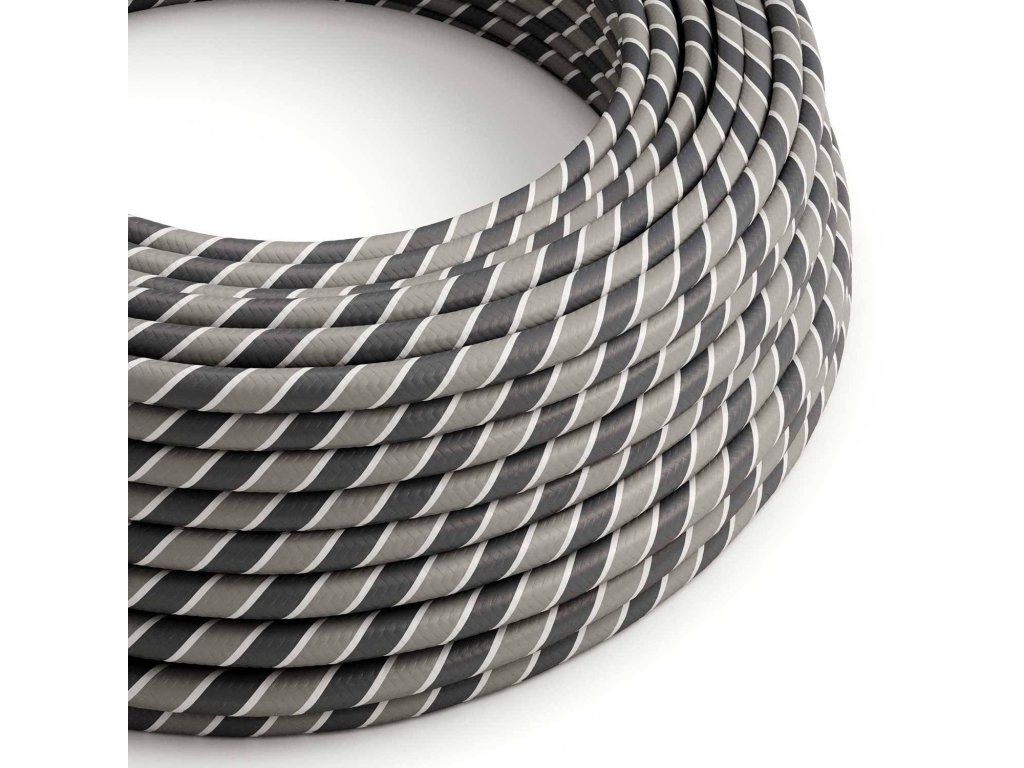 Textilní kabel Vertigo ERM44 Ironman s pruhy, v kombinaci bílé a šedé barvy, je ideálním doplňkem k jakémukoliv závěsnému či stolnímu svítidlu, nebo k nástěnným lampám. Díky neutrálním barvám můžete doladit váš interiér k nejvyšší dokonalosti, ať už se jedná o knihovnu, obývací pokoj, restauraci, nebo kavárnu.