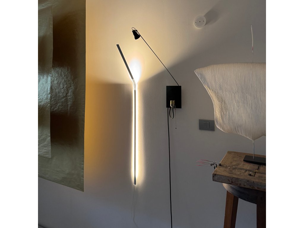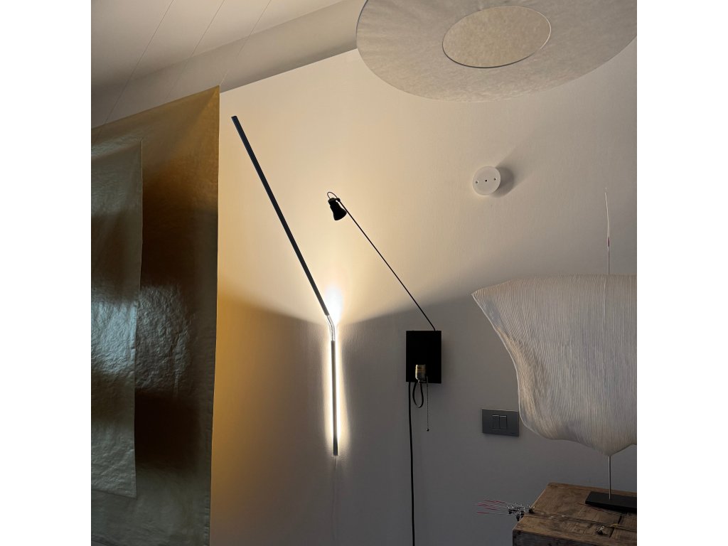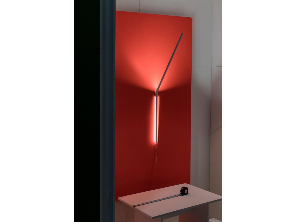 Nové nástěnné svítidlo od Ingo Maurer bylo inspirováno svinovacím metrem. Snoubí industriální eleganci s jedinečnou funkčností spočívající v možnosti měnit distribuci svítidla z jasného tenkého pásu teplého přímého svícení do nepřímého svícení osvětlující vrchní část vnitřních prostor pomocí posuvu pásu směrem nahoru nebo dolu. Svítí teple bílým světlem o náhradní teplotě chromatičnosti (CCT) 2700 K s indexem podání barev (CRI) > 90, které si navíc k večeru můžete dlouhým stiskem tlačítka na zadní straně ztlumit.