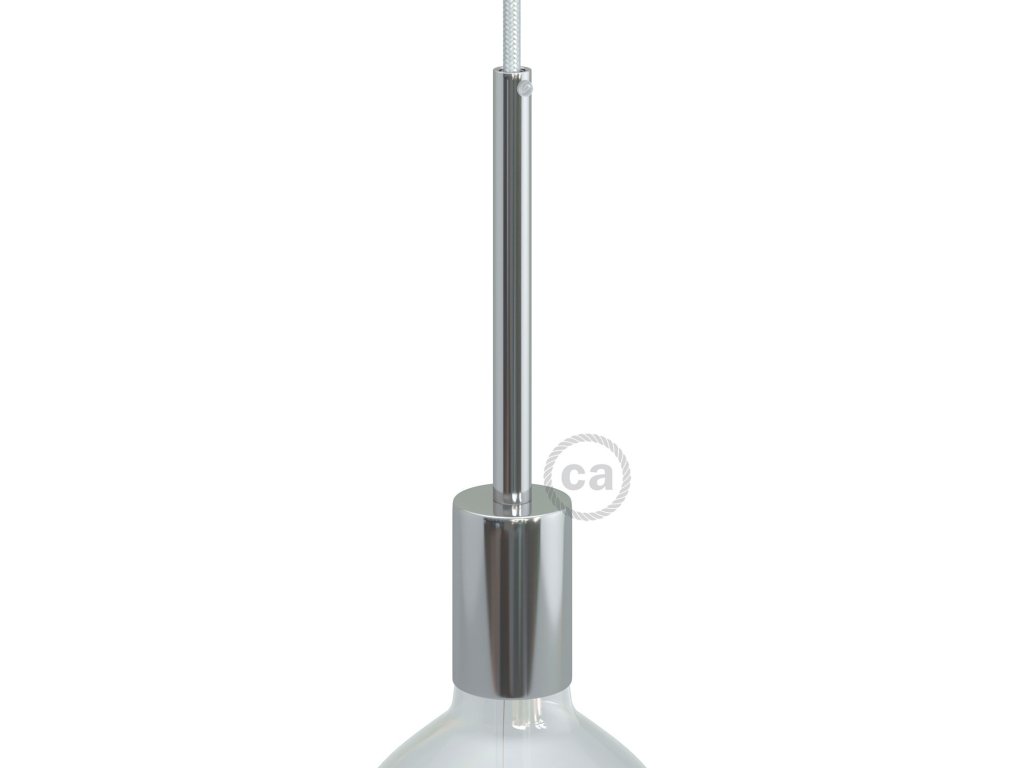 Válcová kovová E27 objímka s 15 cm válcovou kovovou kabelovou průchodkou je ideální pro vytvoření nástěnné, stolní nebo stropní lampy.