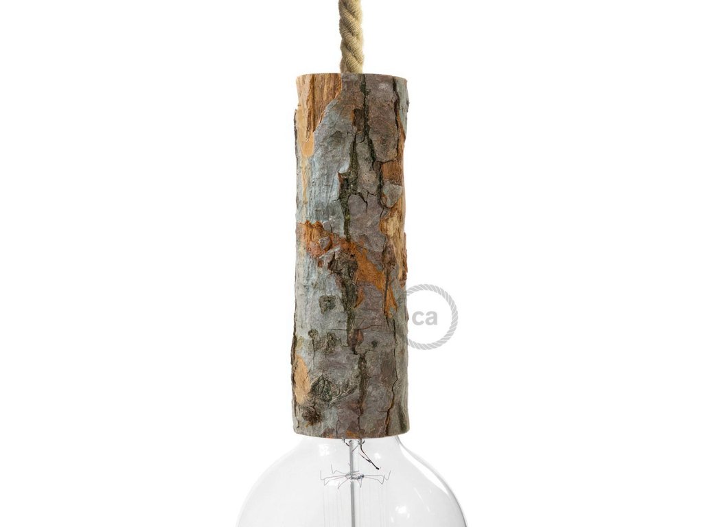 Velká dřevěná objímka E27 s kůrou je ideální pro vytvoření stolní nebo stropní lampy se spirálovým, kulatým nebo XL lanovým kabelom (s průměrem 16mm).