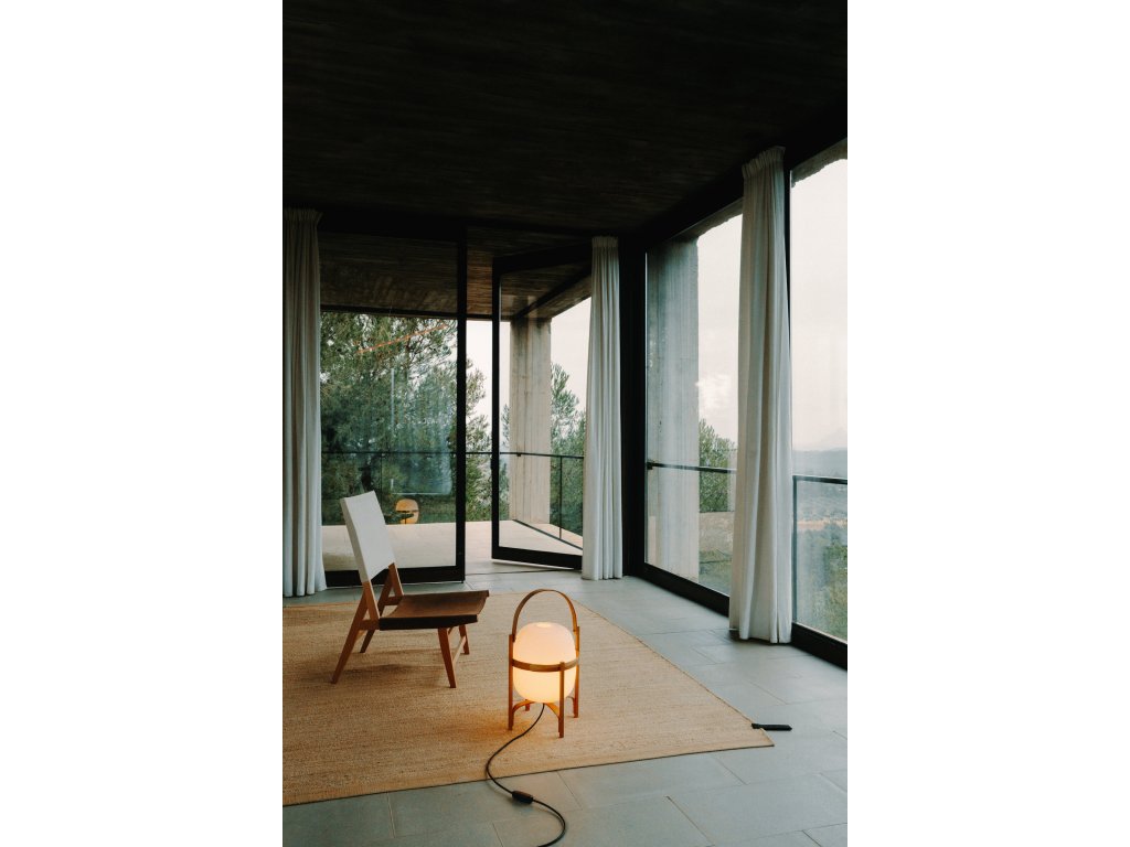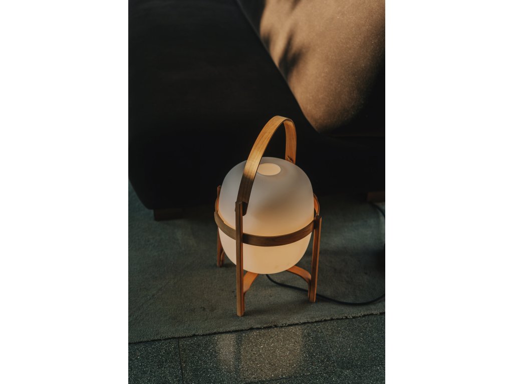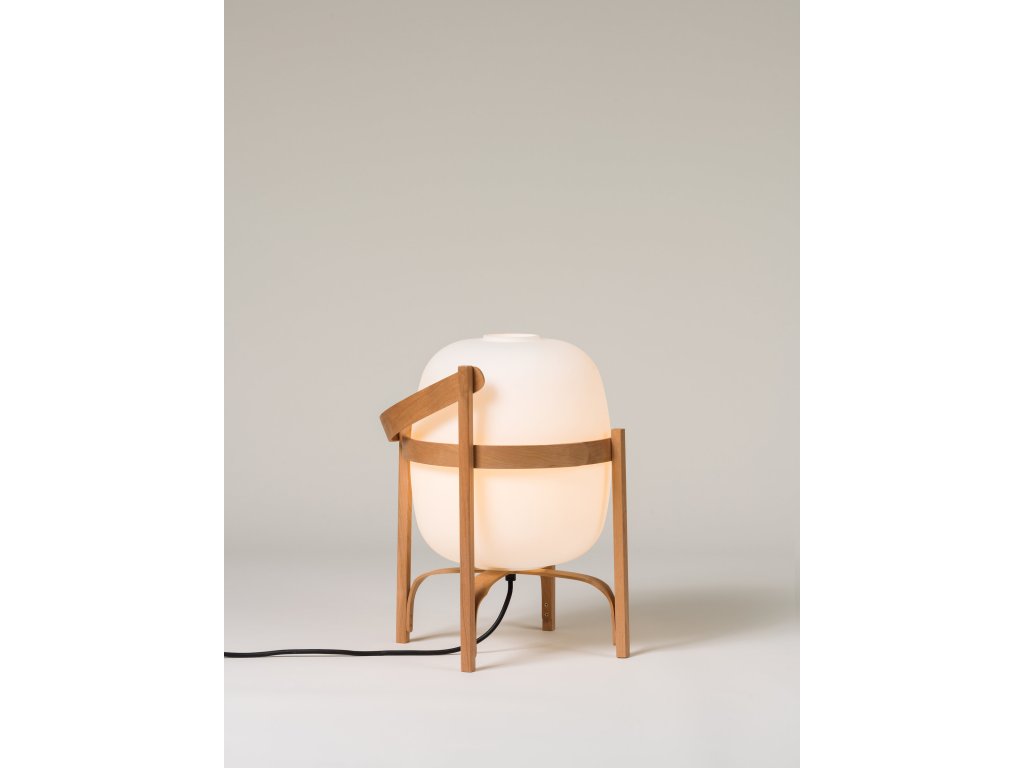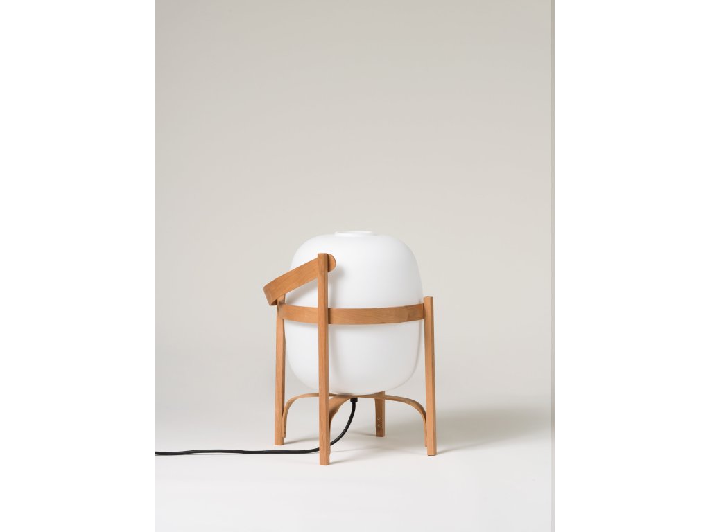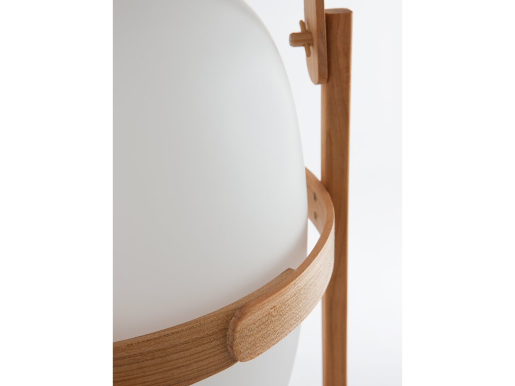 Tato lampa najde své místo stejně přirozeně na stole jako na podlaze. Je tvořena jemnou konstrukcí z třešňového dřeva, která chrání opálovou kouli, která jemně rozptyluje světlo. Je vyrobena evropskými řemeslníky pomocí tradičních technik ohýbání parou, přičemž každá křivka je pečlivě vyleštěna a pevně sestavena ručně.