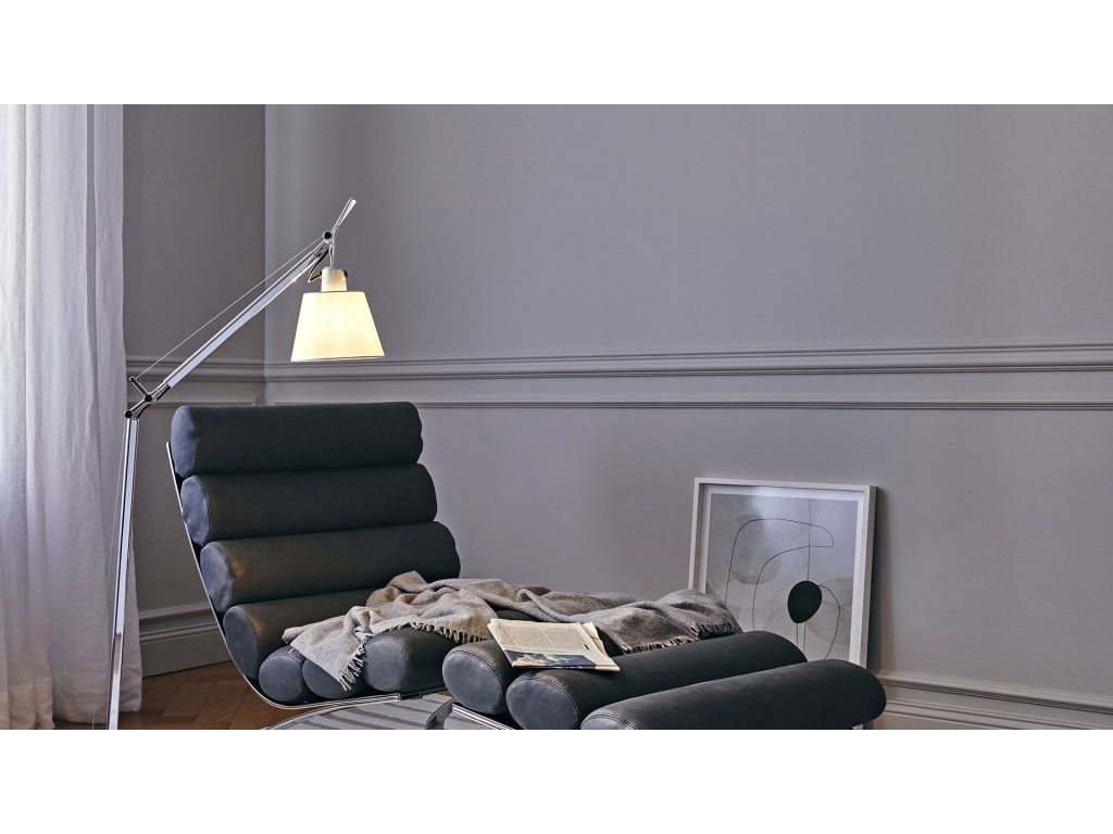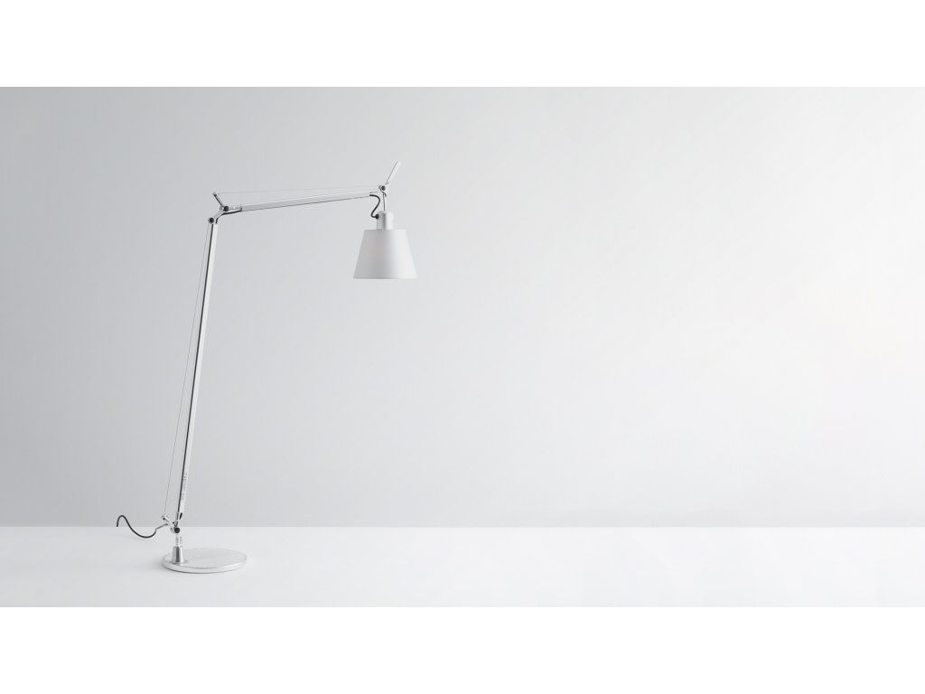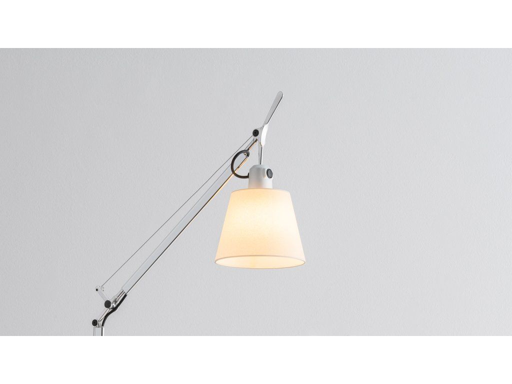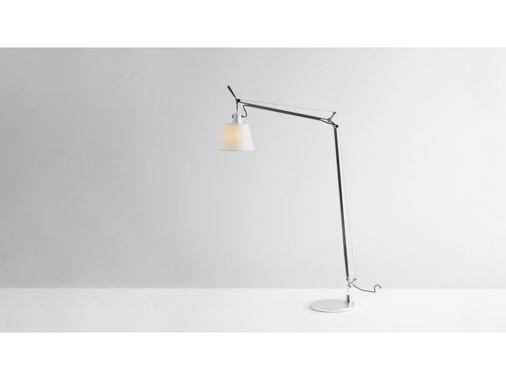 Stojací lampa, možno doplnit stolní, nástěnnou nebo zavěšenou verzí ve stejném designu. Nastavitelné rameno z leštěného hliníku, stínítko z pergamenu či stříbrné saténové tkaniny (průměr 18cm), klouby a nosné prvky z leštěného hliníku. Stínítko samotné není směrovací, vždy zůstává ve vertikální poloze nezávisle na úhlu ramene. Založeno na systému pružinového vyvažování.