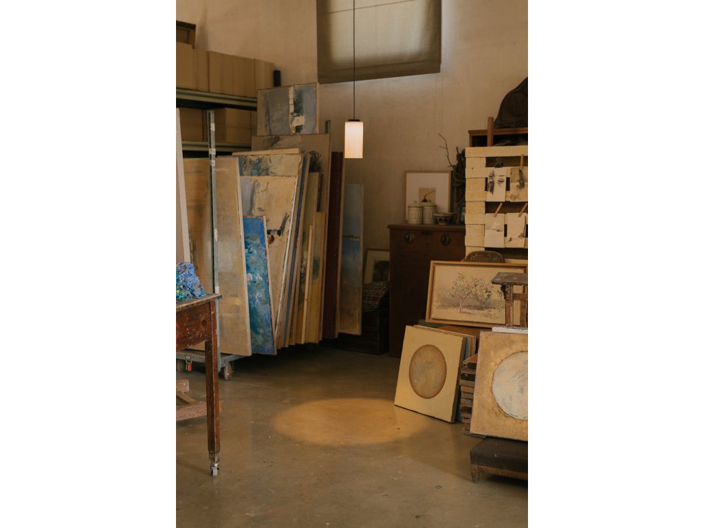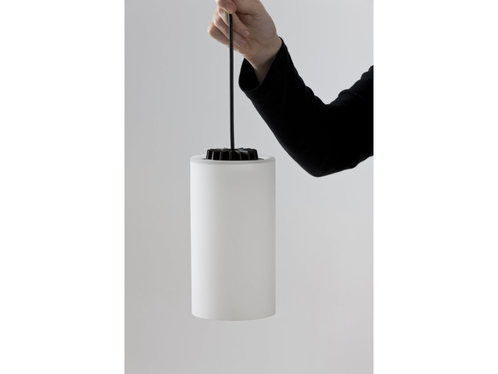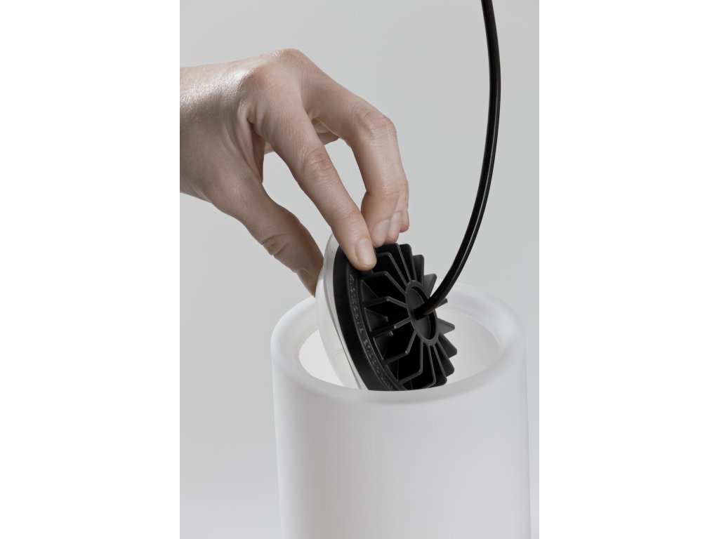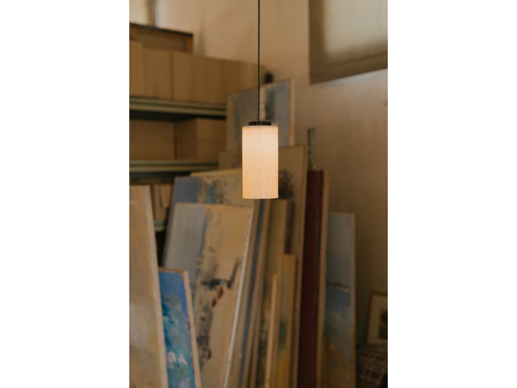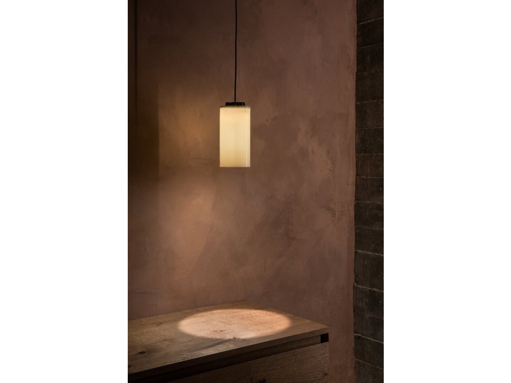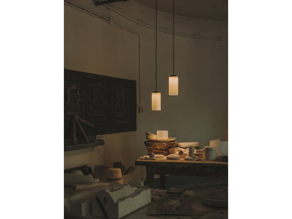 Ikonické závěsné svítidlo se stínidlem z ručně vyráběného porcelánu Sargadelos (Galicie, Španělsko) jemně rozptylujícího teple bílé světlo ze zabudovaného LED světelného zdroje s náhradní teplotou chromatičnosti (CCT) 2700 K a indexem podání barev (CRI) 90 s možností stmívání přes DALI s černou povrchovou stropní krytkou s matným povrchem.